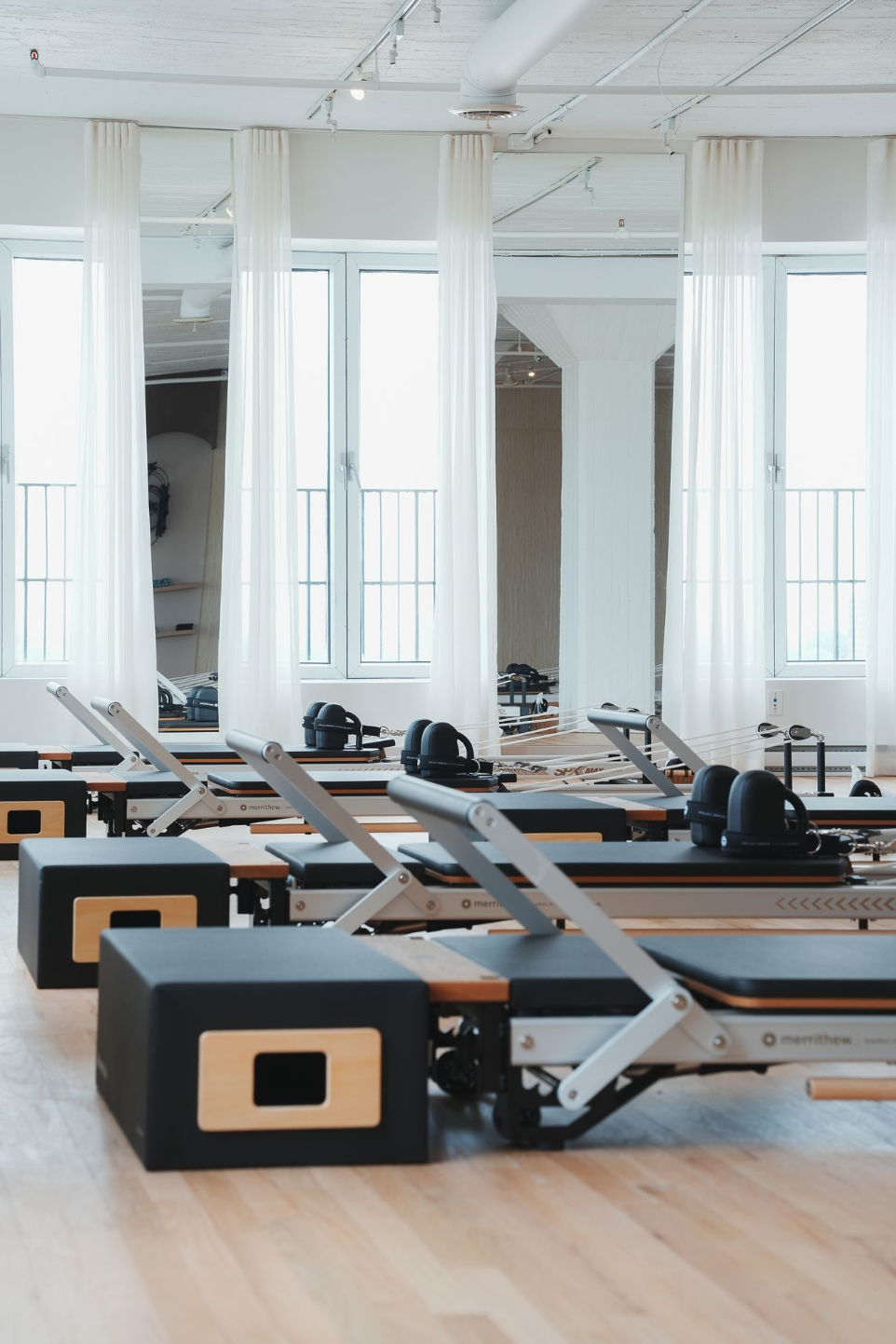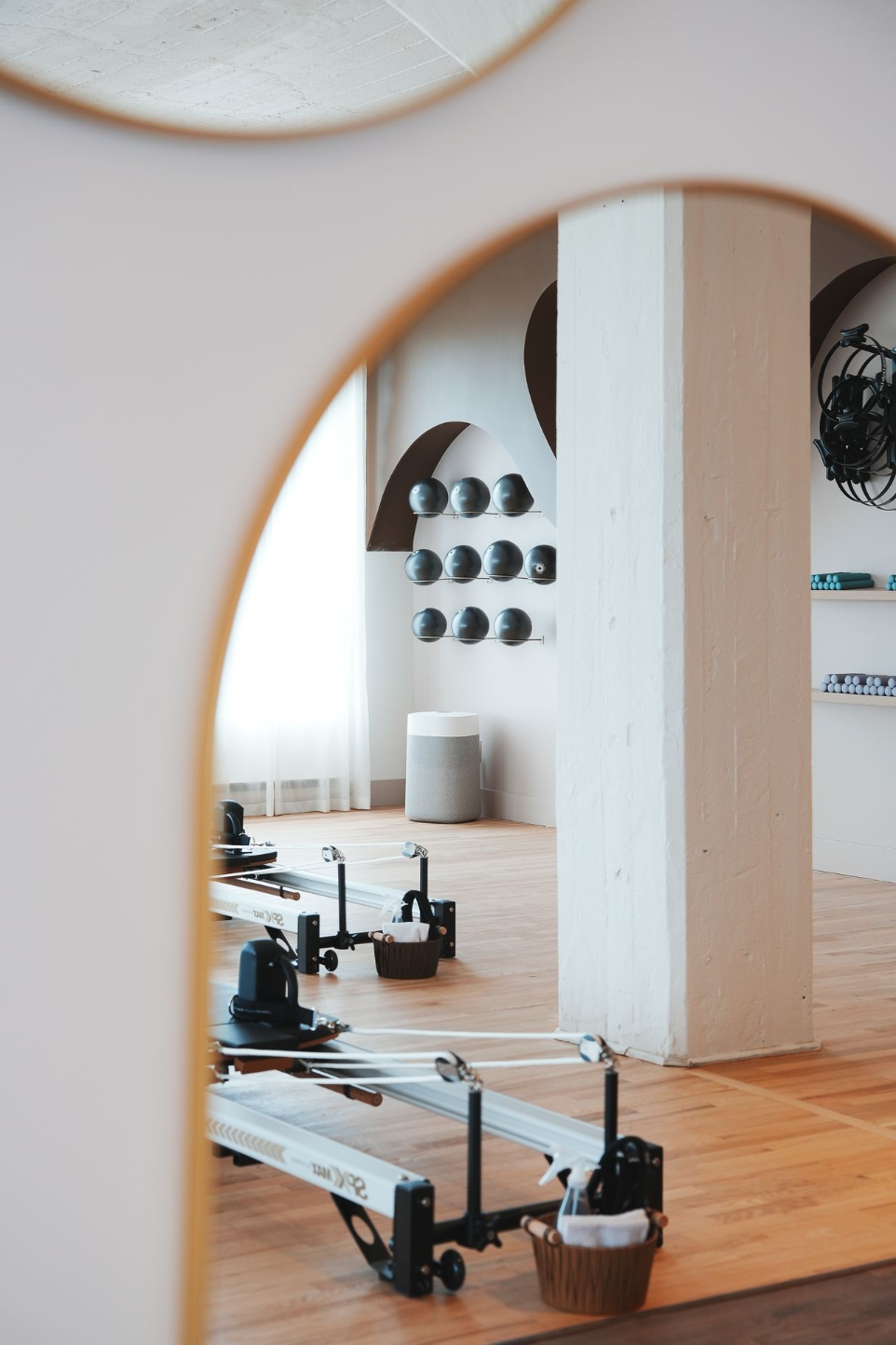 Dans ce décor pensé pour le calme et la concentration, chaque geste devient langage. Le bois clair, les reflets du soleil et les courbes du Reformer composent une atmosphère douce et puissante à la fois.